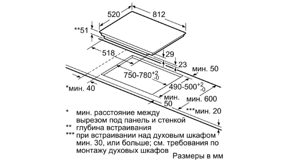 Возможность комбинирования с варочными панелями шириной: 60, 80 или 90 см