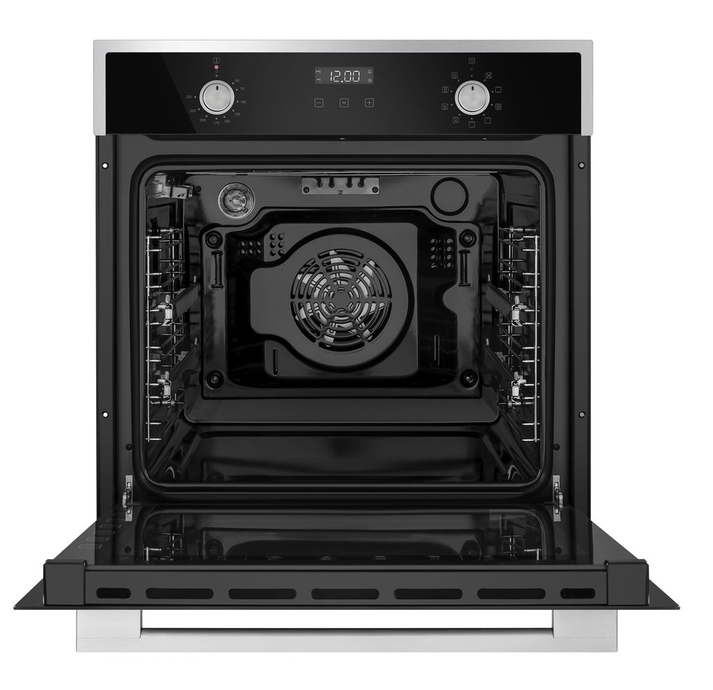 Комбинированное управление реализовано в виде сенсорного дисплея и поворотных цельнометаллических ручек PUSH PULL, которые легким нажатием убираются внутрь корпуса. Можно выбрать режим работы, температуру (50-250оC), установить таймер и блокировку от детей. В данной модели есть 10 режимов: традиционный нагрев, большой гриль, конвекционный нагрев, малый гриль, разморозка, конвекция с нижним нагревом, горячий воздух, пицца, объемный турбогриль, освещение.