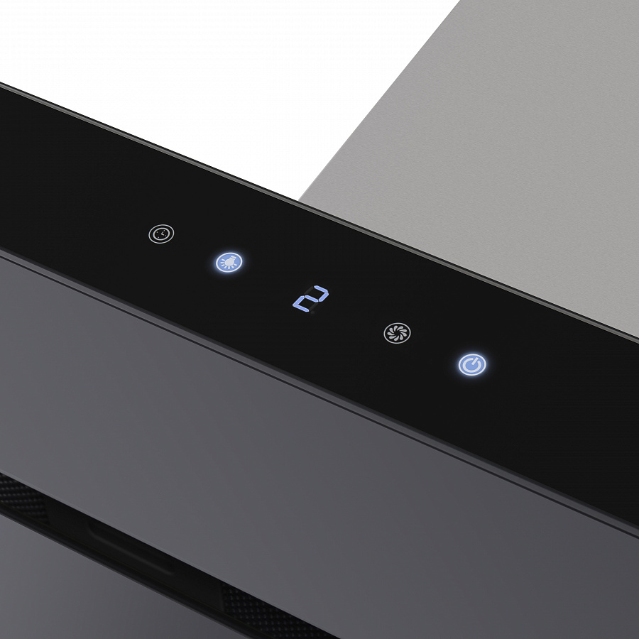 Вытяжка оснащена сенсорным управлением с возможностью выбора любой из 3-х предложенных скоростей, разной степени интенсивности.