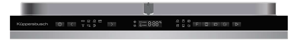Панель управления посудомоечной машиной расположена сверху двери внутри прибора. Во время работы интегрированных посудомоечных машин не всегда точно ясно, на каком этапе выполнения программы находится прибор. При помощи нового сигнала "Beam on floor", – красной точки, отражающейся на полу, – Вы сразу узнаете, закончился процесс мытья или нет. Мигающий сигнал указывает на неполадки.