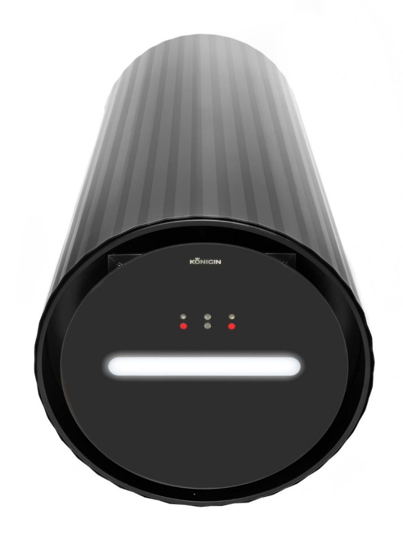 Данная модель оснащена системой управления, распознающей движения рук (жесты) под вытяжкой на стеклянной декоративной панели. Светодиодный индикатор, отображает текущую скорость работы вытяжки определенным цветом (синий, фиолетовый, зеленый, красный). Цвет диода отображается на поверхности варочной плиты, расположенного под вытяжкой.